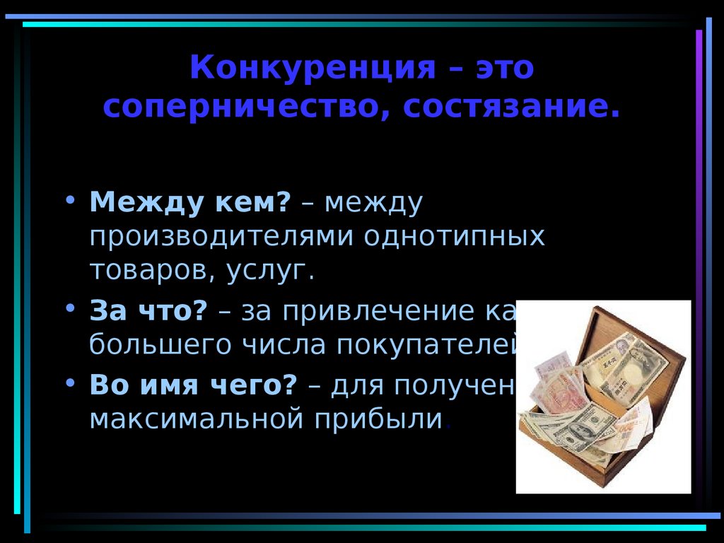 Конкуренция** (concurrentia (лат) – столкновение, состязание)) – ст) – столкновение, состязание)олкновение, сост) – столкновение, состязание)язание)