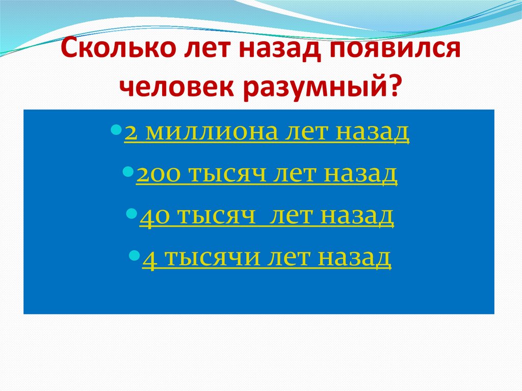 Сколько лет назад появилсячеловек разумный?