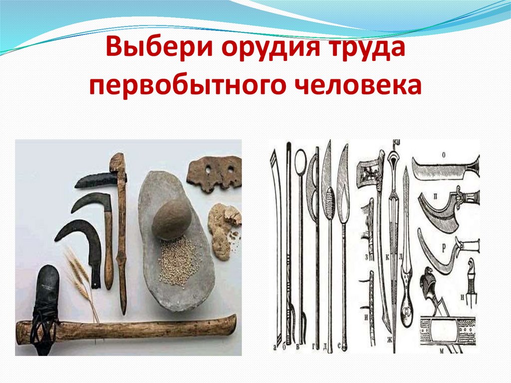 Выбери орудия трудапервобытного человека