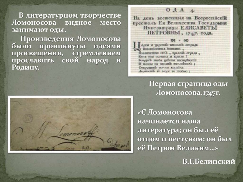 В литературном творчествеЛомоносова видное место