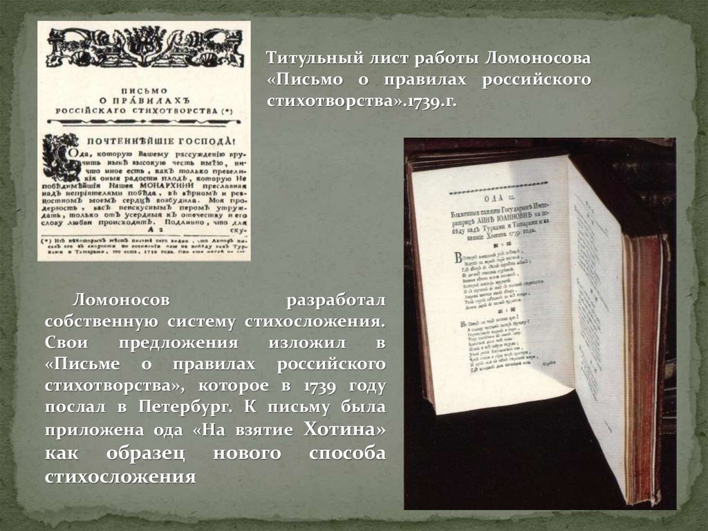 Титульный лист работы Ломоносова«Письмо о правилах российского