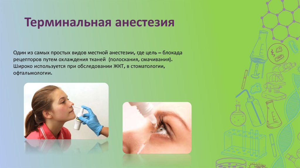 Терминальная анестезияОдин из самых простых видов местной анестезии, где цель – блокада