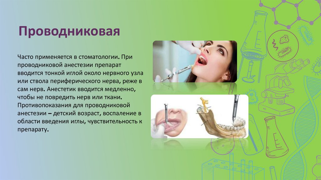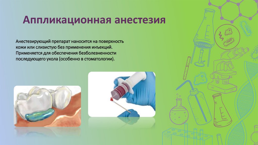Аппликационная анестезияАнестезирующий препарат наносится на поверхность