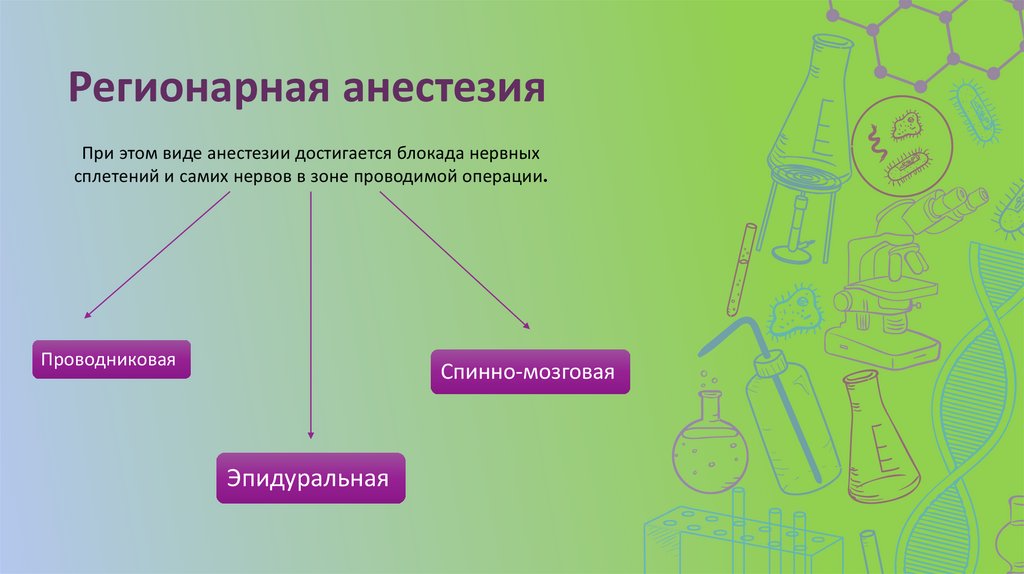 Регионарная анестезияПри этом виде анестезии достигается блокада нервных