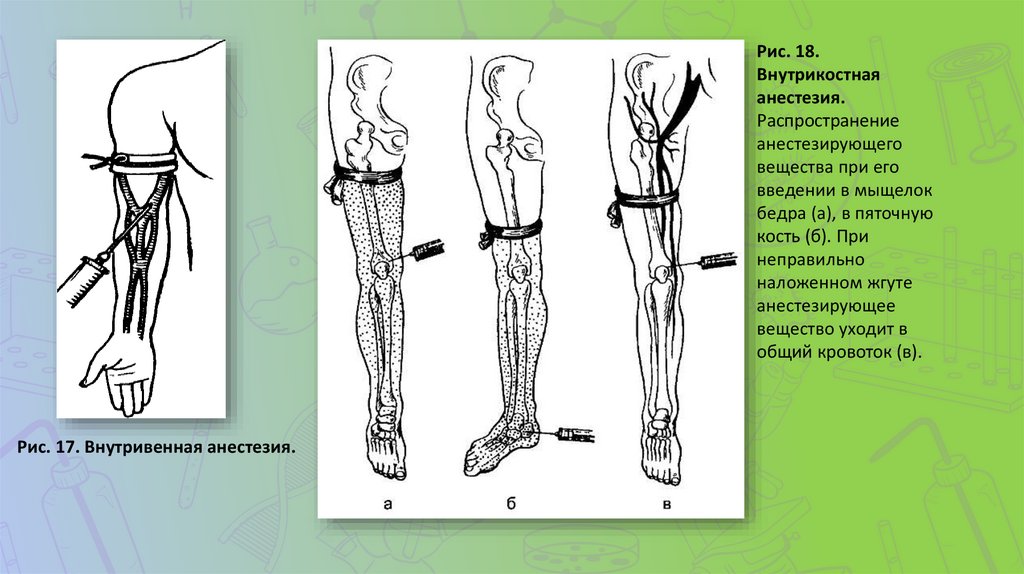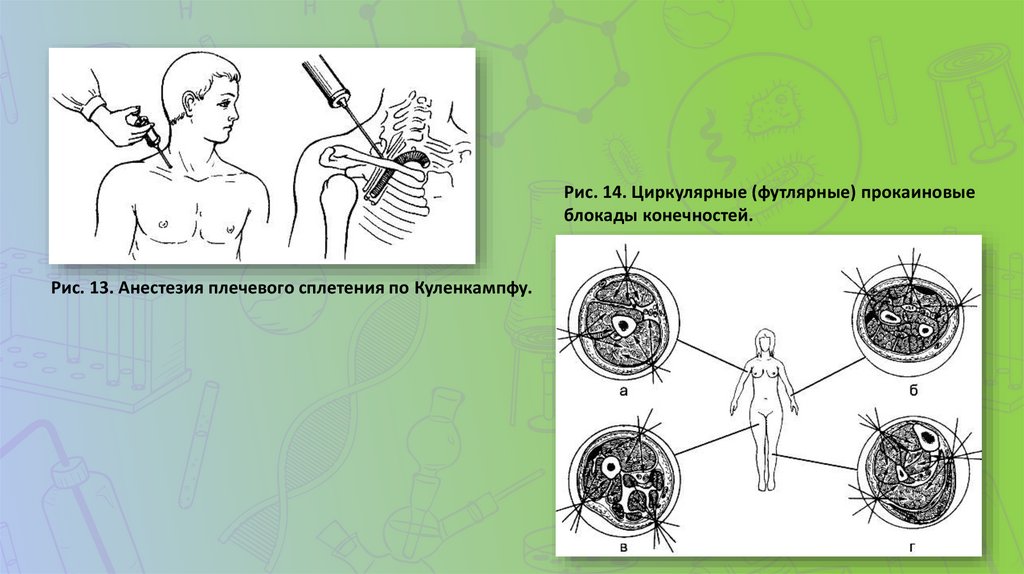 Рис. 14. Циркулярные (футлярные) прокаиновыеблокады конечностей.