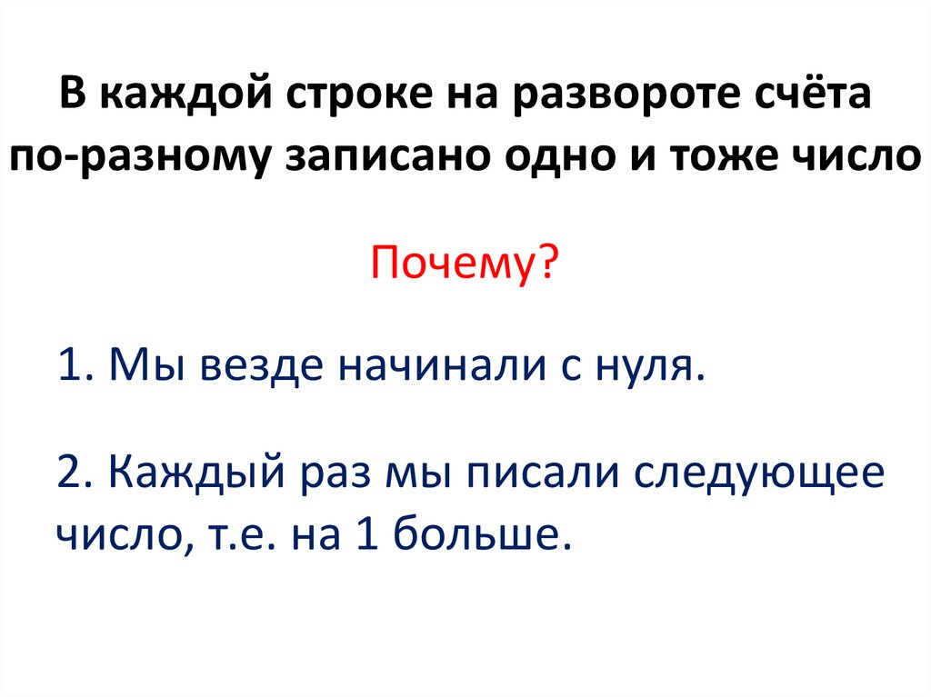В каждой строке на развороте счётапо-разному записано одно и тоже число