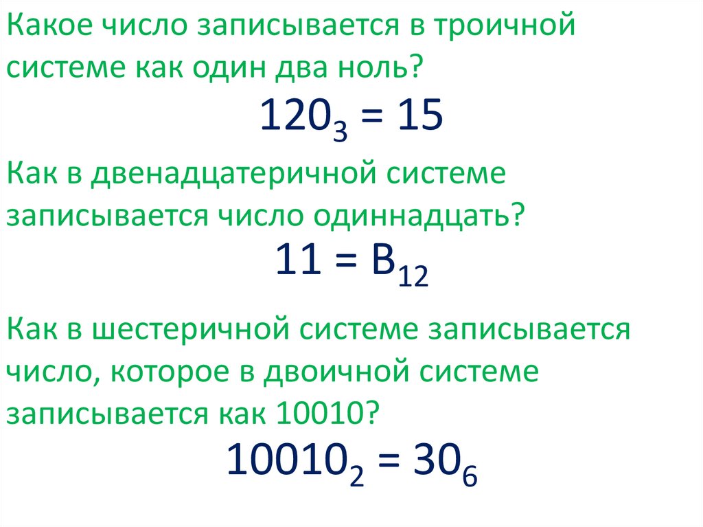 Какое число записывается в троичнойсистеме как один два ноль?