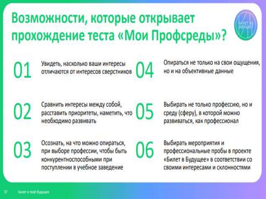 Подготовьте вопросы по результатам теста к занятию по профориентации,