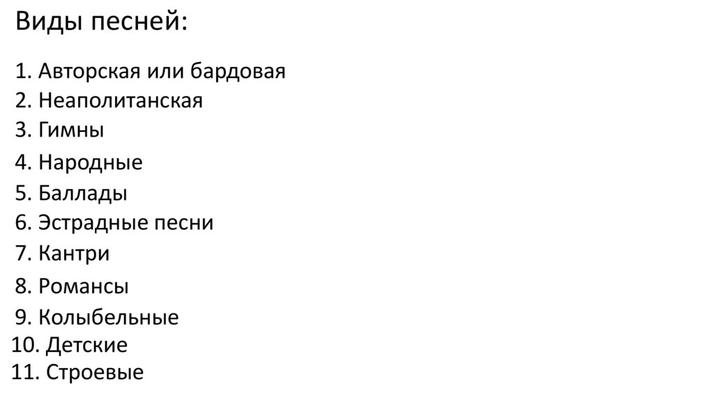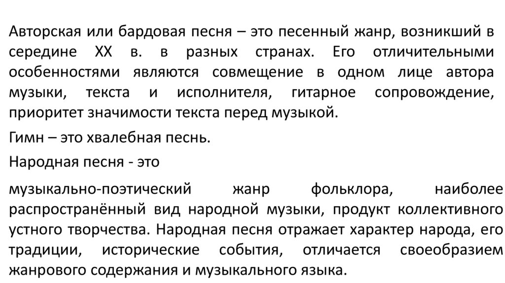 Виды песней:1. Авторская или бардовая