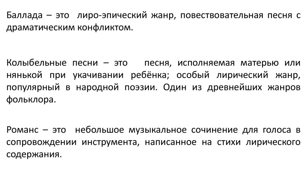 баллада, гимн, народная песня).