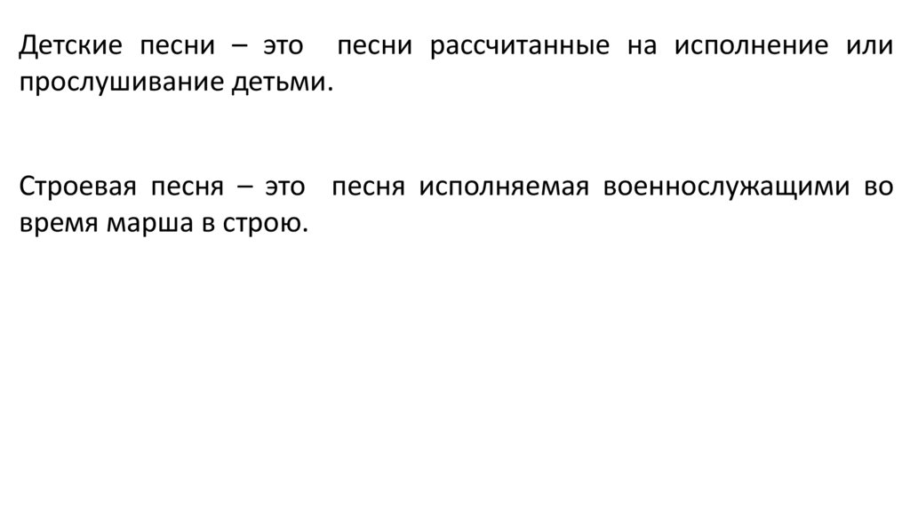 Детские песни – это песни рассчитанные на исполнение илипрослушивание детьми.