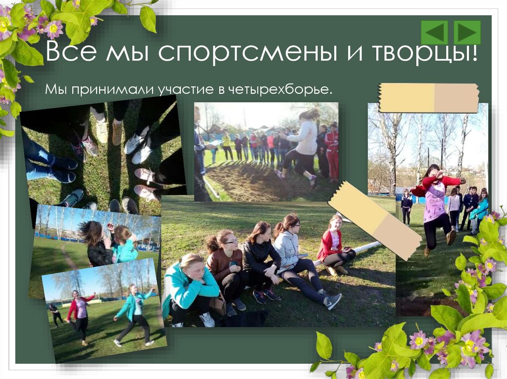 Все мы спортсмены и творцы!Мы принимали участие в четырехборье.