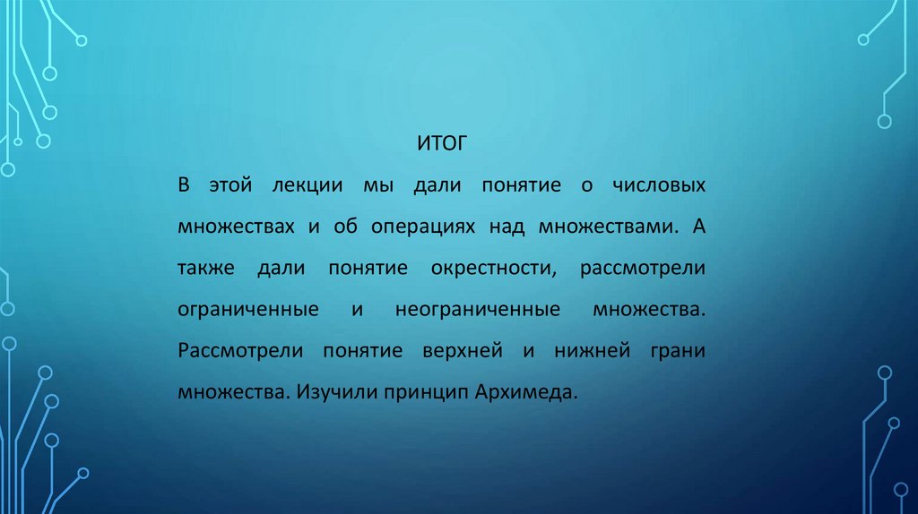 ВВЕДЕНИЕ.В этой лекции мы дадим понятие о числовых