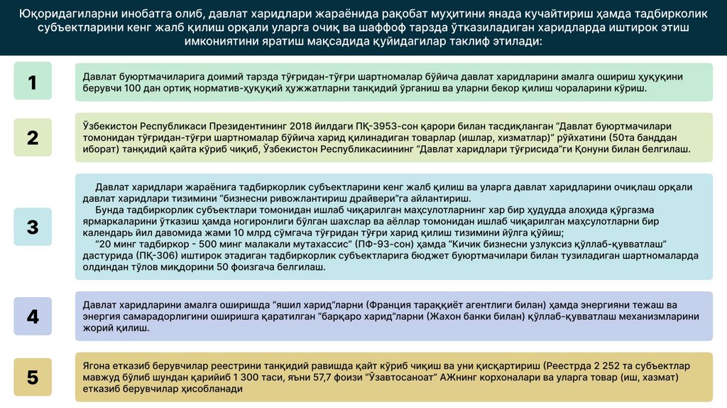 Давлат харидларини такомиллаштириш бўйича хорижий ташкилотлар билан икки томонлама ҳамкорлик тўғрисида