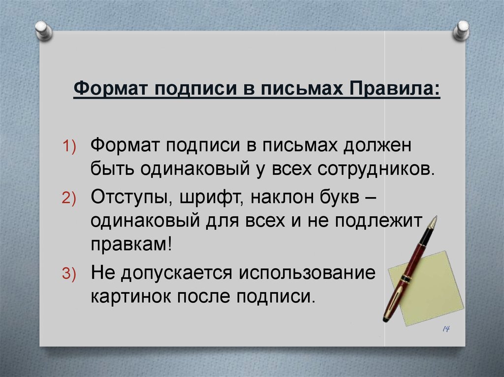 Формат подписи в письмах Правила:1) Формат подписи в письмах должен