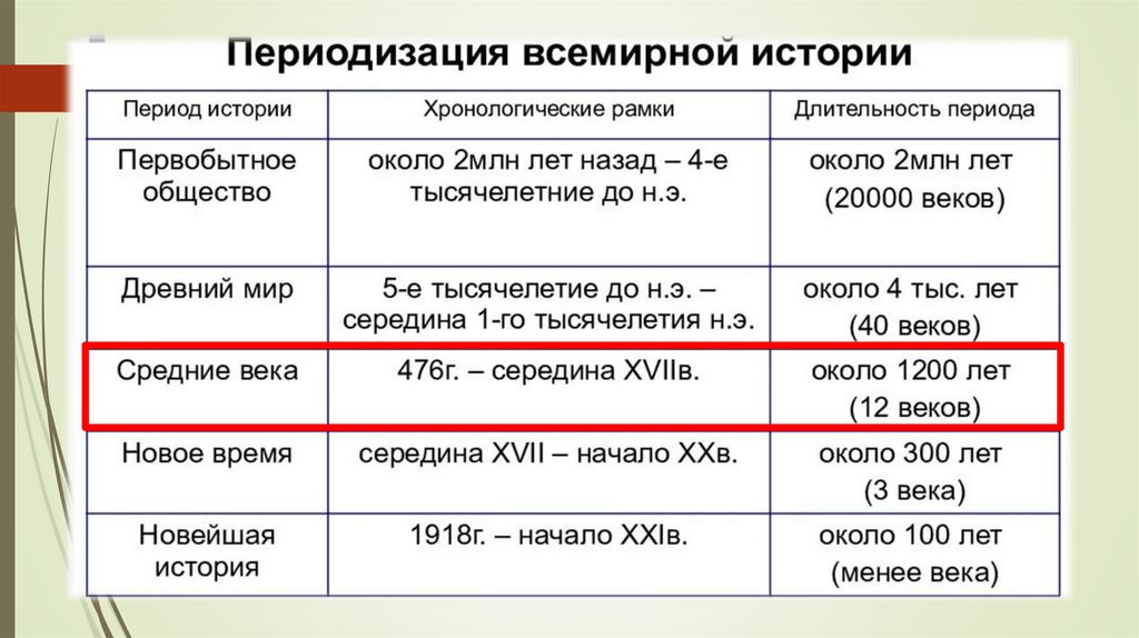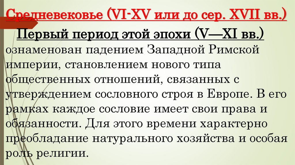 Средневековье (VI-XV или до сер. XVII вв.)Первый период этой эпохи (V—XI вв.)