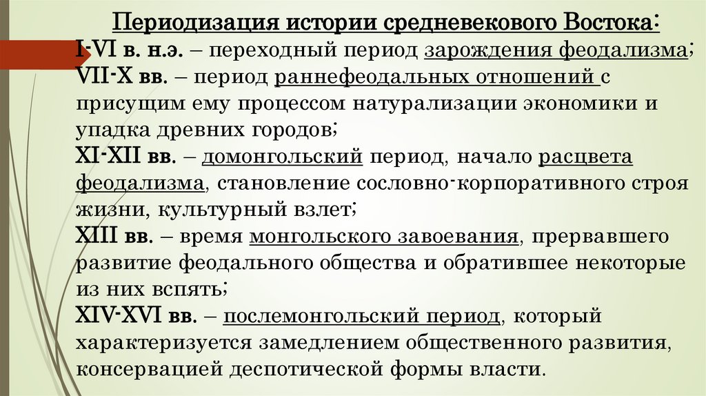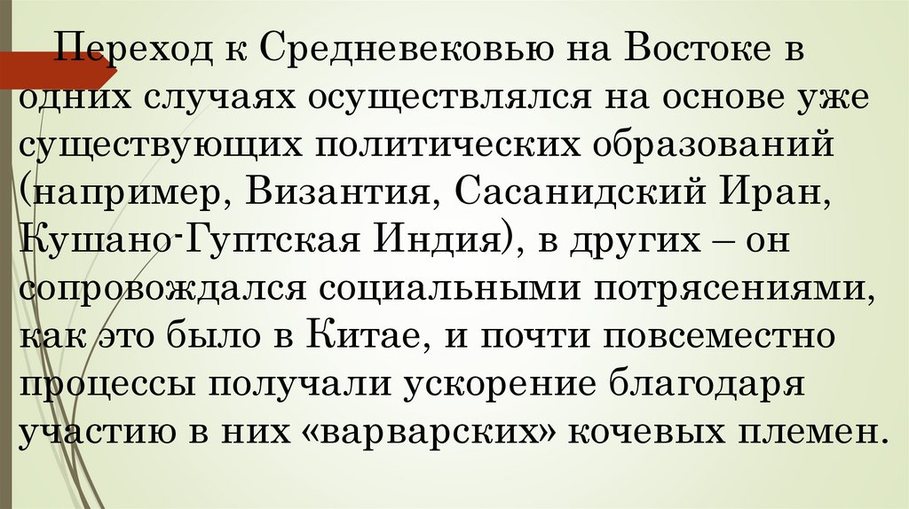 Переход к Средневековью на Востоке водних случаях осуществлялся на основе уже