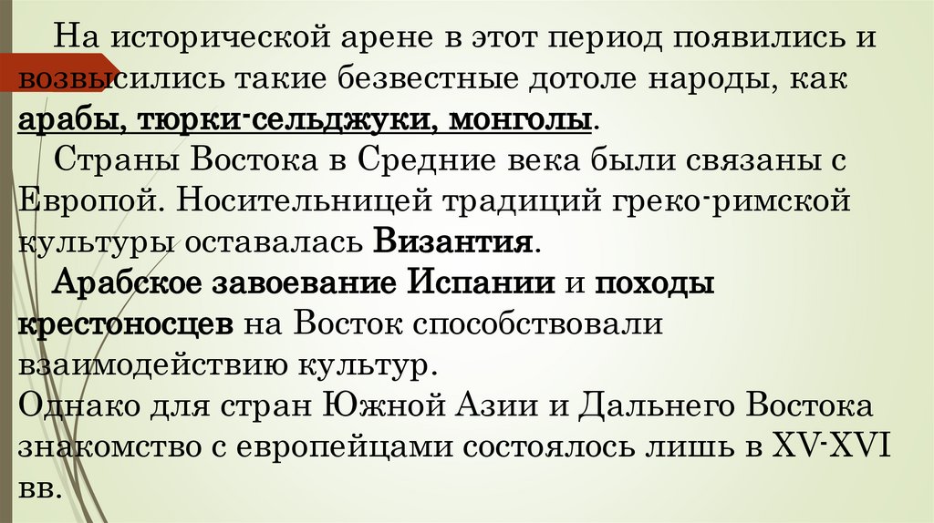 На исторической арене в этот период появились ивозвысились такие безвестные дотоле народы, как