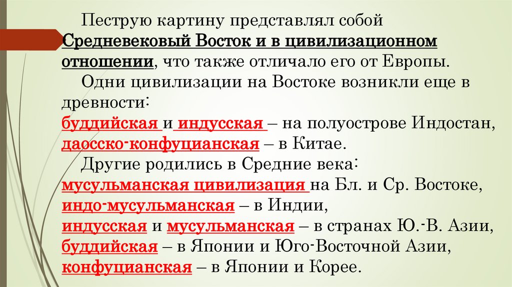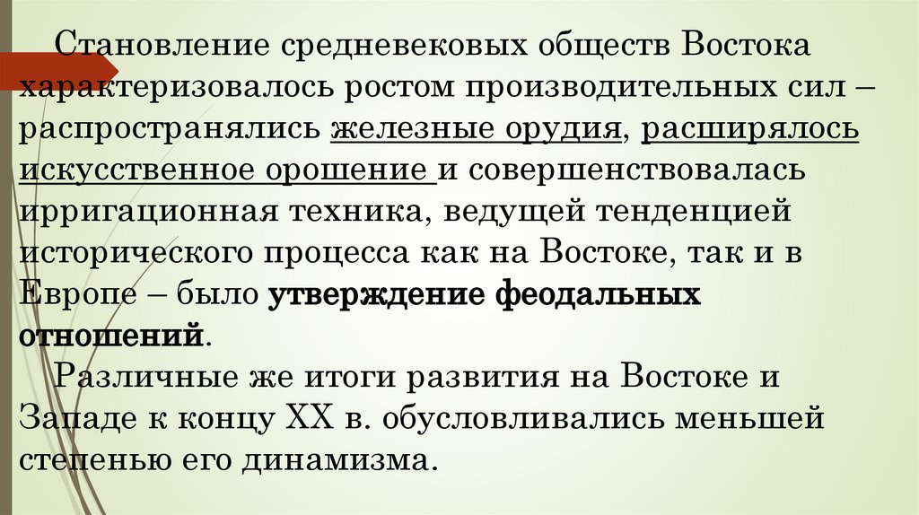 Становление средневековых обществ Востокахарактеризовалось ростом производительных сил –