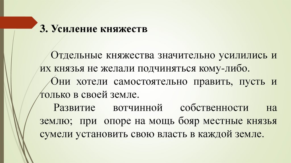 3. Усиление княжествОтдельные княжества значительно усилились и