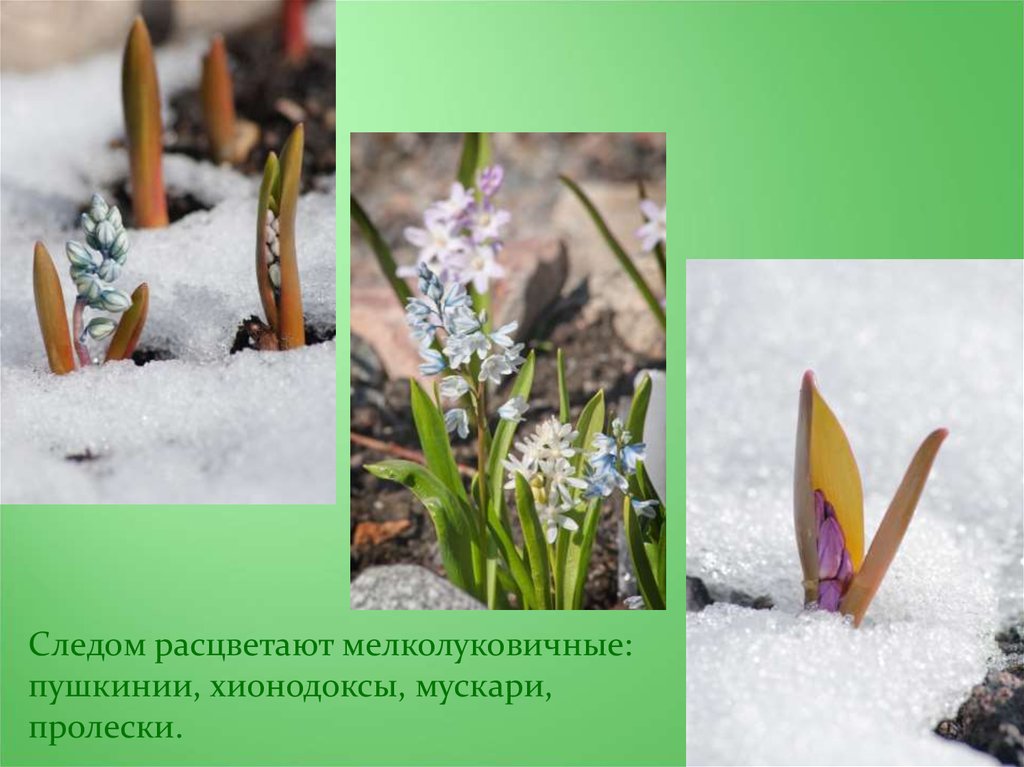 Следом расцветают мелколуковичные:пушкинии, хионодоксы, мускари,