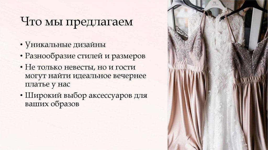 Наши преимущества• Прокат свадебных и вечерних платьев