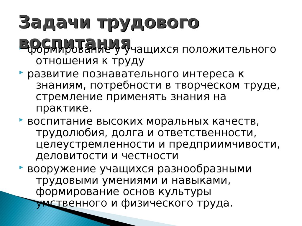 Трудовое воспитаниеЗадача – приобретение обучающимся знаний о