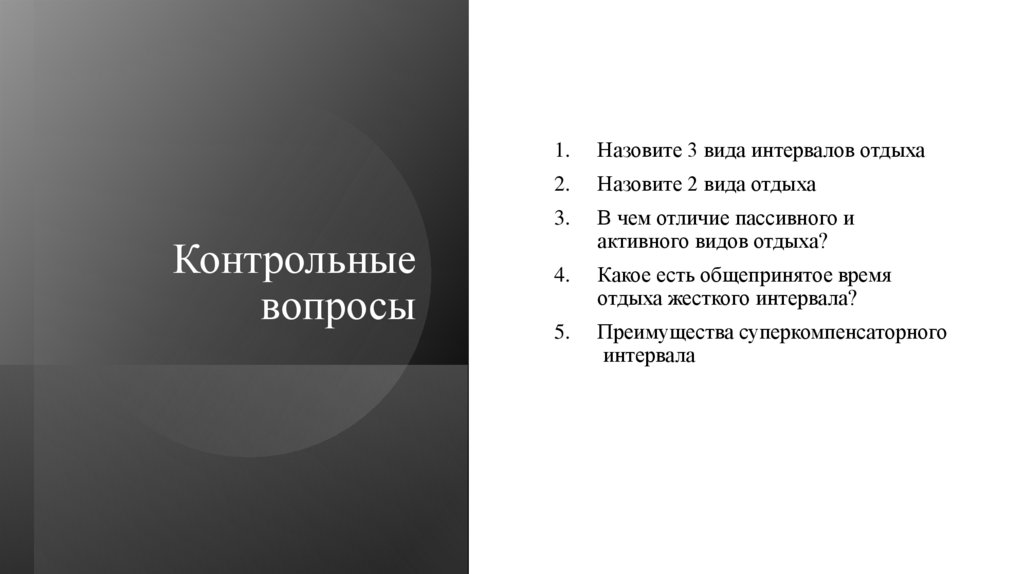 Назовите 3 вида интервалов отдыха