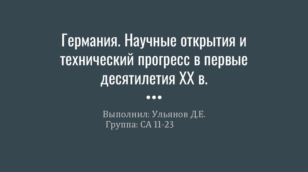 Германия. Научные открытия и технический прогресс в первые десятилетия XX в