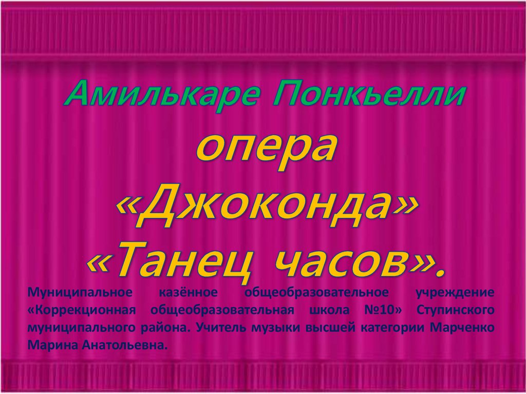 Амилькаре Понкьелли опера «Джоконда», «Танец часов»