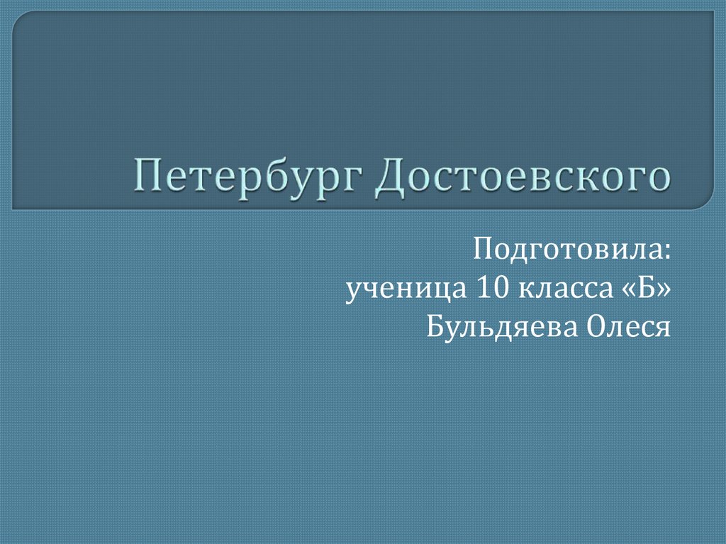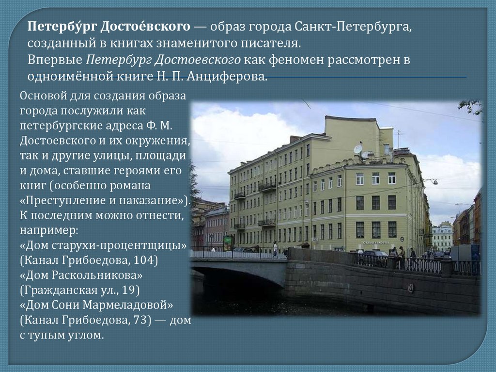 Петербу́ рг Достое́ вского — образ города Санкт-Петербурга,созданный в книгах знаменитого писателя.