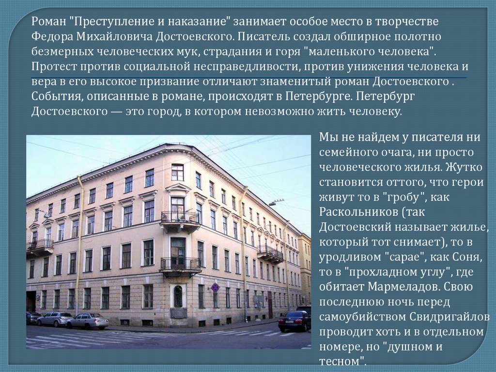 Роман "Преступление и наказание" занимает особое место в творчествеФедора Михайловича Достоевского. Писатель создал обширное полотно