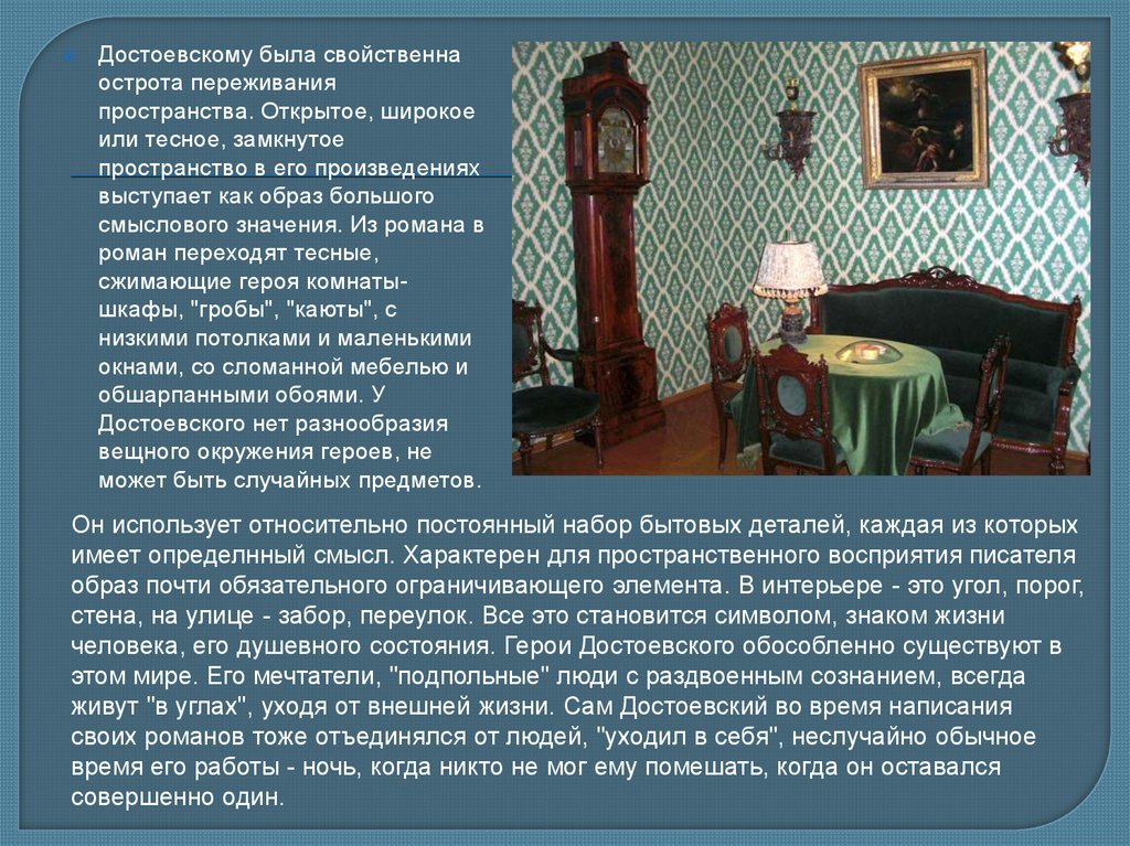 живут "в углах", уходя от внешней жизни. Сам Достоевский во время написания