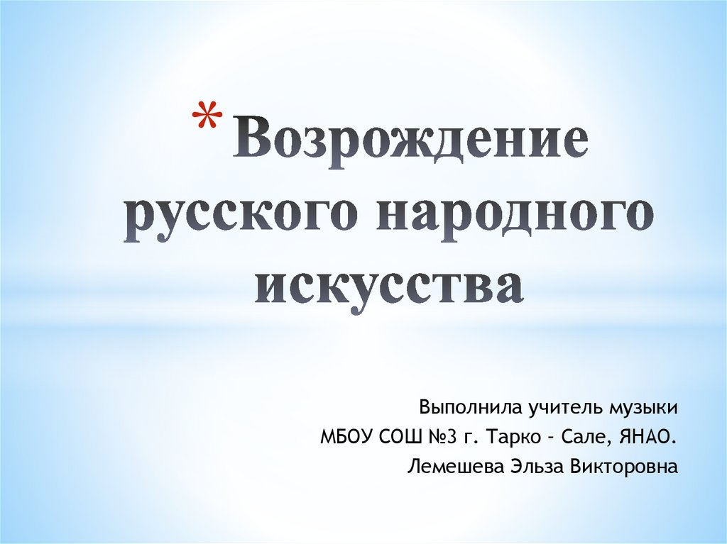 МБОУ СОШ №3 г. Тарко – Сале, ЯНАО.