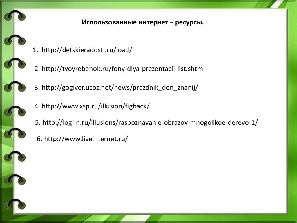 Использованные интернет – ресурсы.1. http://detskieradosti.ru/load/