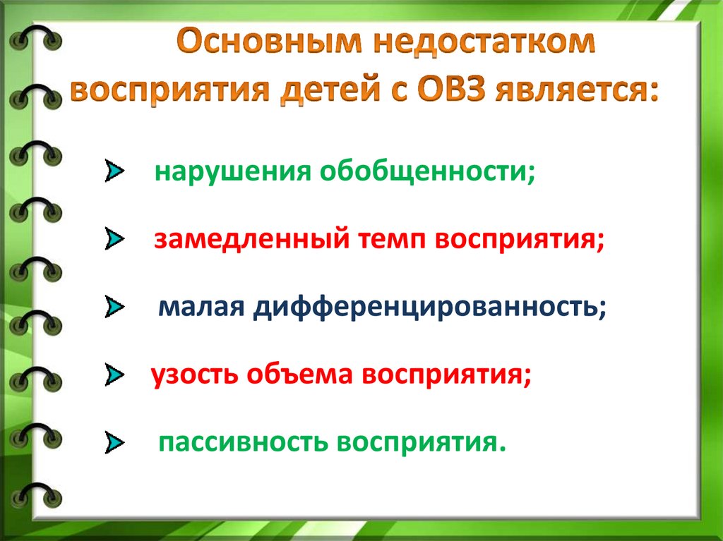 Особенности восприятия учащихся с ограниченными возможностями здоровья