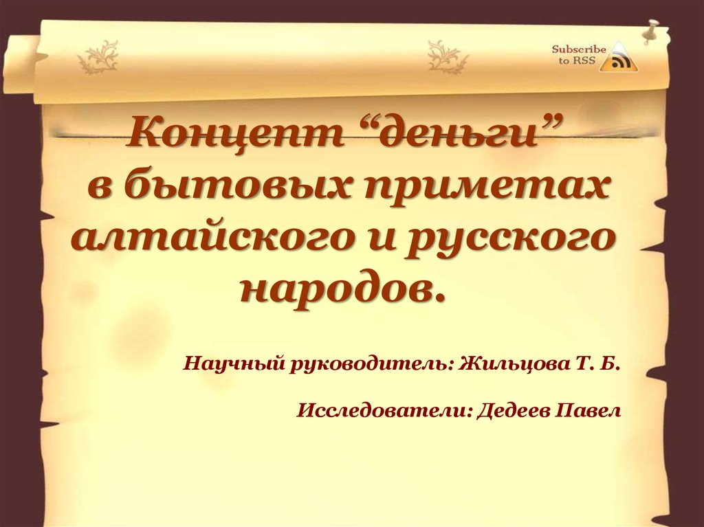 1. Концепт “деньги” в бытовых приметах алтайского и русского народов.