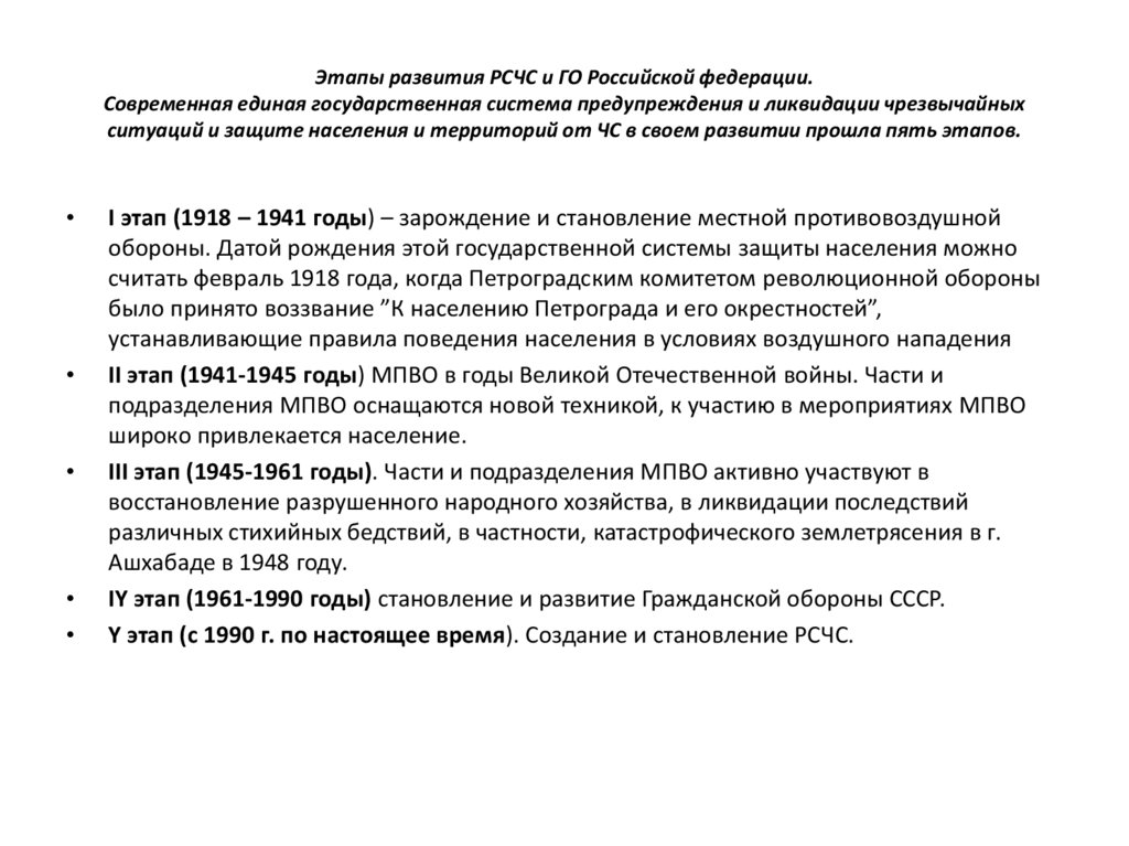 Этапы развития РСЧС и ГО Российской федерации.Современная единая государственная система предупреждения и ликвидации чрезвычайных