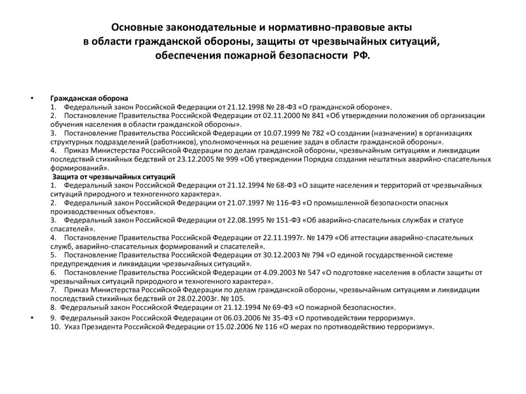 1. Федеральный закон Российской Федерации от 21.12.1998 № 28-ФЗ «О гражданской обороне».