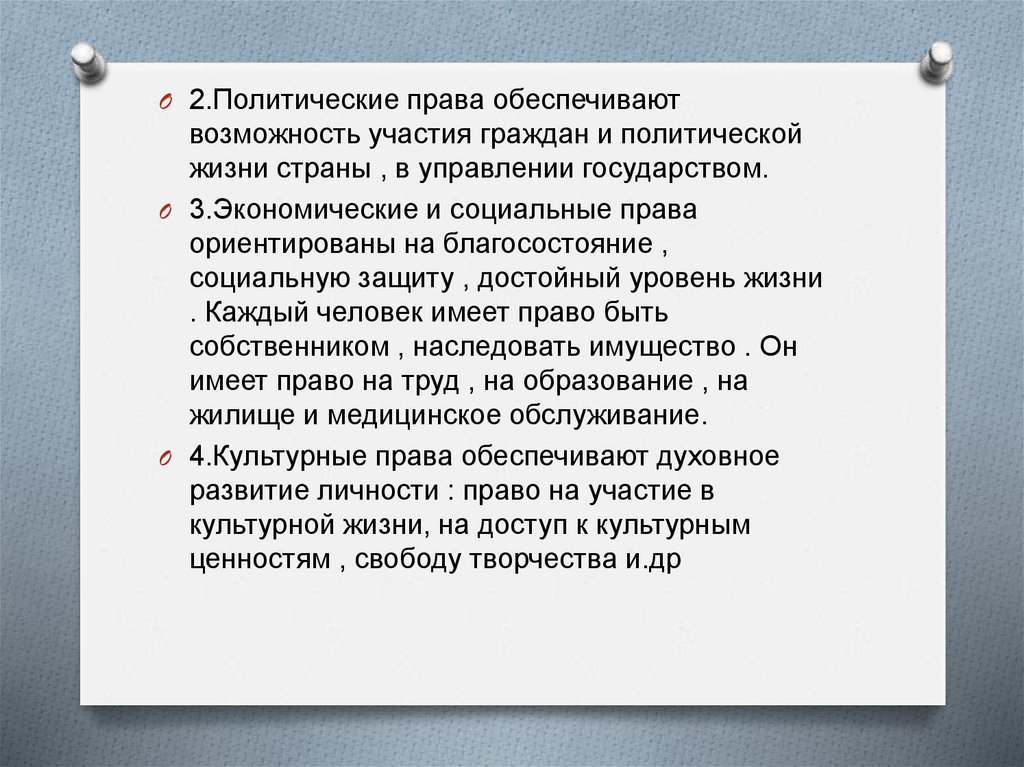 O 2.Политические права обеспечиваютвозможность участия граждан и политической