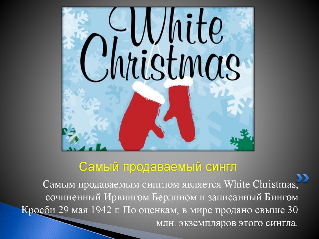 Самый продаваемый синглСамым продаваемым синглом является White Christmas,