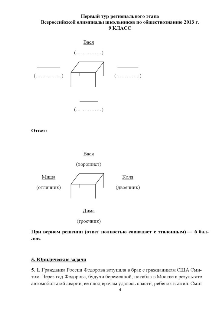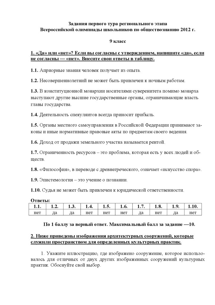 Задания первого тура регионального этапа Всероссийской олимпиады школьников по обществознанию 2012 г