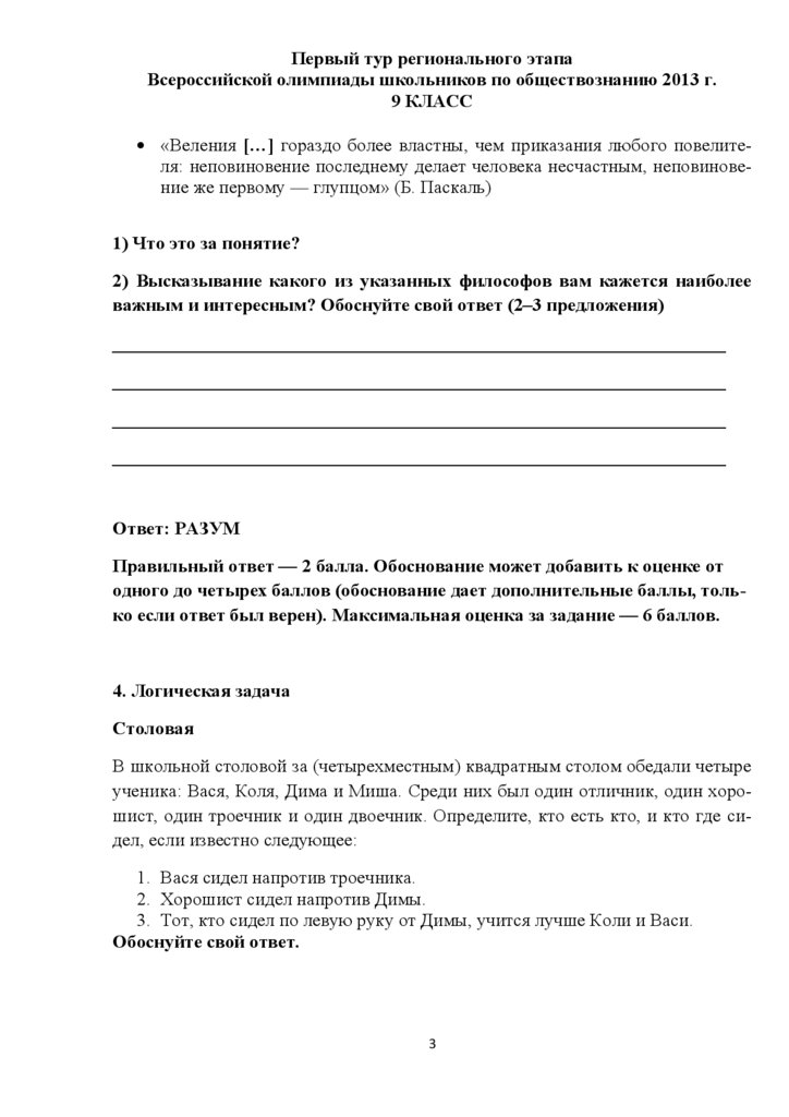 одного до четырех баллов (обоснование дает дополнительные баллы, только если ответ был верен). Максимальная оценка за задание — 6 баллов.