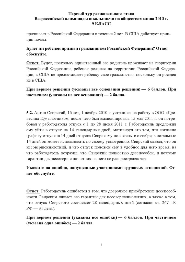5.2. Антон Свирский, 16 лет, 1 ноября 2010 г. устроился на работу в ООО «Древесина IQ» плотником, после чего был эмансипирован. 15 мая 2011 г. он потребовал у работодателя отпуск с 1 по 28 июня 2011 г. Работодатель предложил