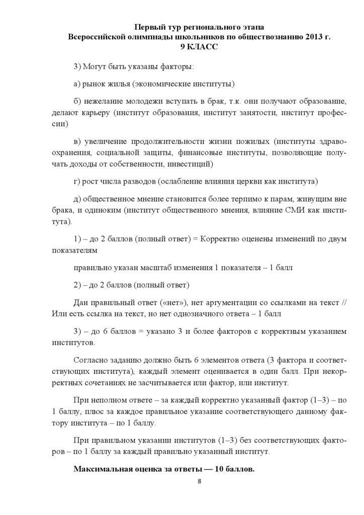 При правильном указании институтов (1–3) без соответствующих факторов – по 1 баллу за каждый правильно указанный институт.
