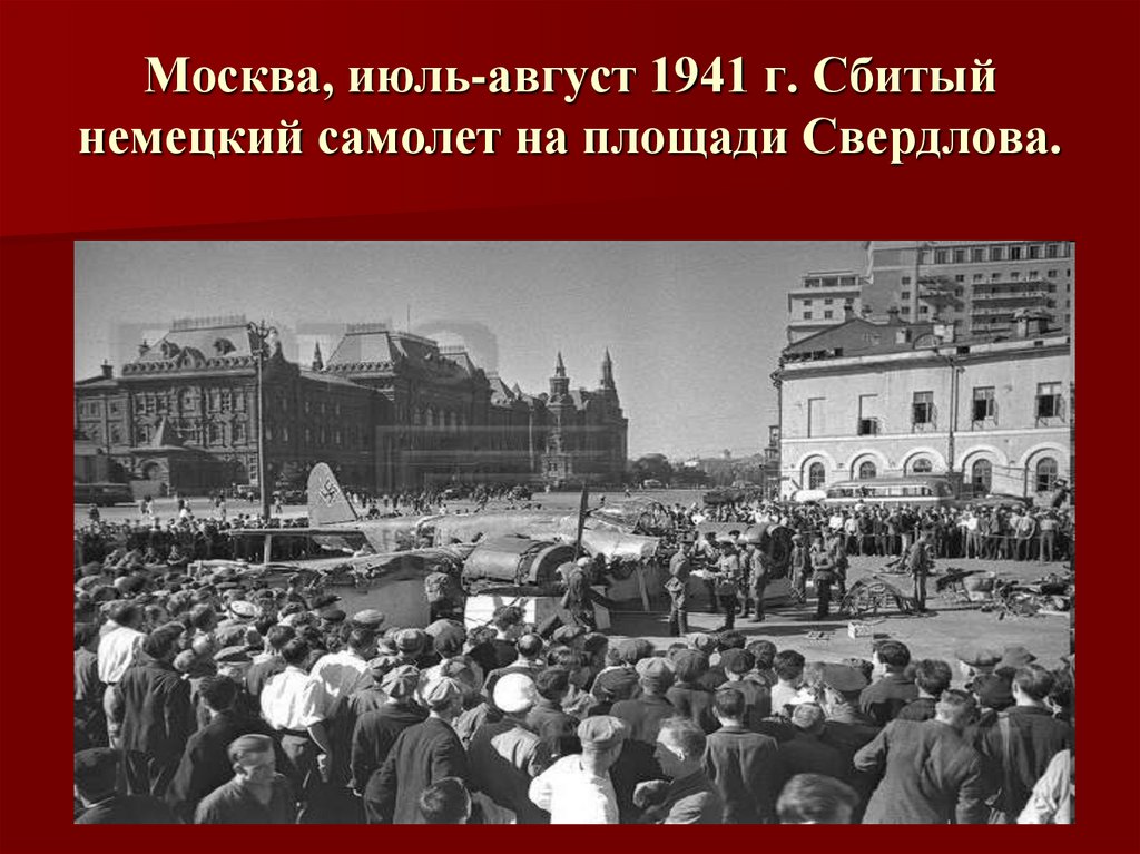 Москва, июль-август 1941 г. Сбитый немецкий самолет на площади Свердлова.