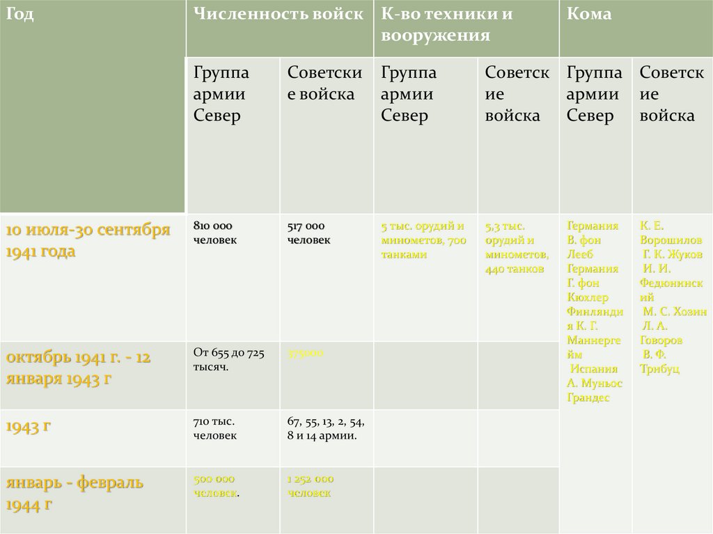 ГодЧисленность войск К-во техники и