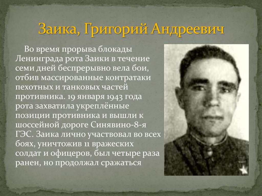 Во время прорыва блокадыЛенинграда рота Заики в течение