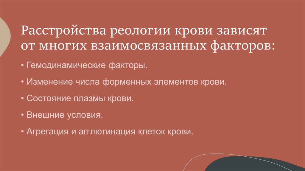 Расстройства реологии крови зависятот многих взаимосвязанных факторов: