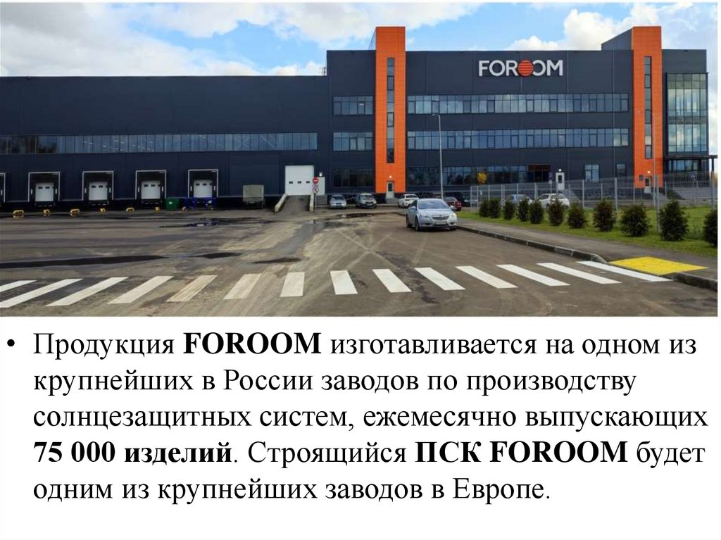 • Продукция FOROOM изготавливается на одном изкрупнейших в России заводов по производству